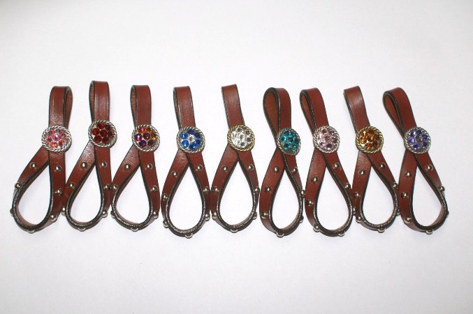 Leather tie down hold with 1" antique silver rope edge concho and silver spots. Dozen pack. Made in the USA. MSRP $96.00